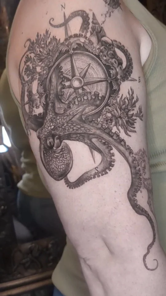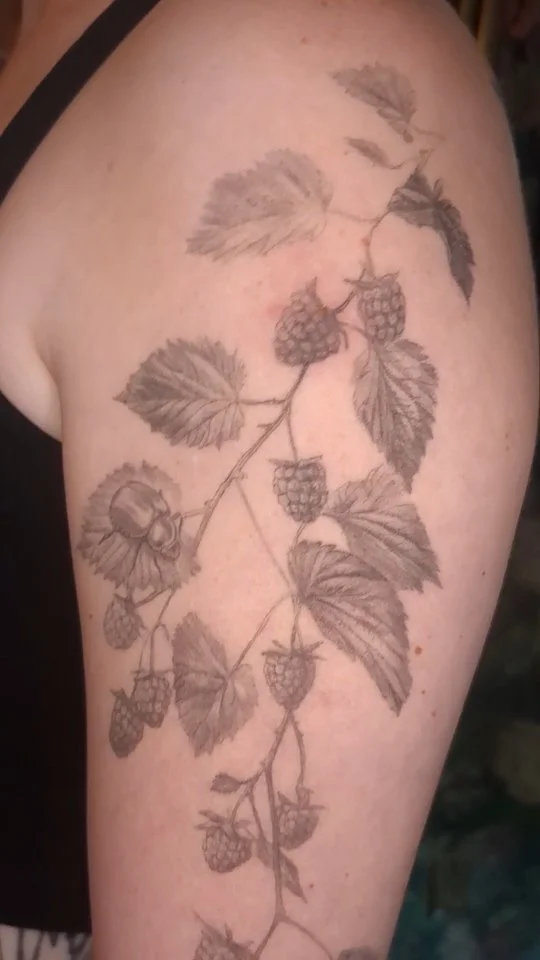 “Botanical realism with emphasis on fine art and memorable objects. My best work is created in black & gray realism and muted color…loving long, flowy designs with rich activity, texture, and meaning…” -Chai